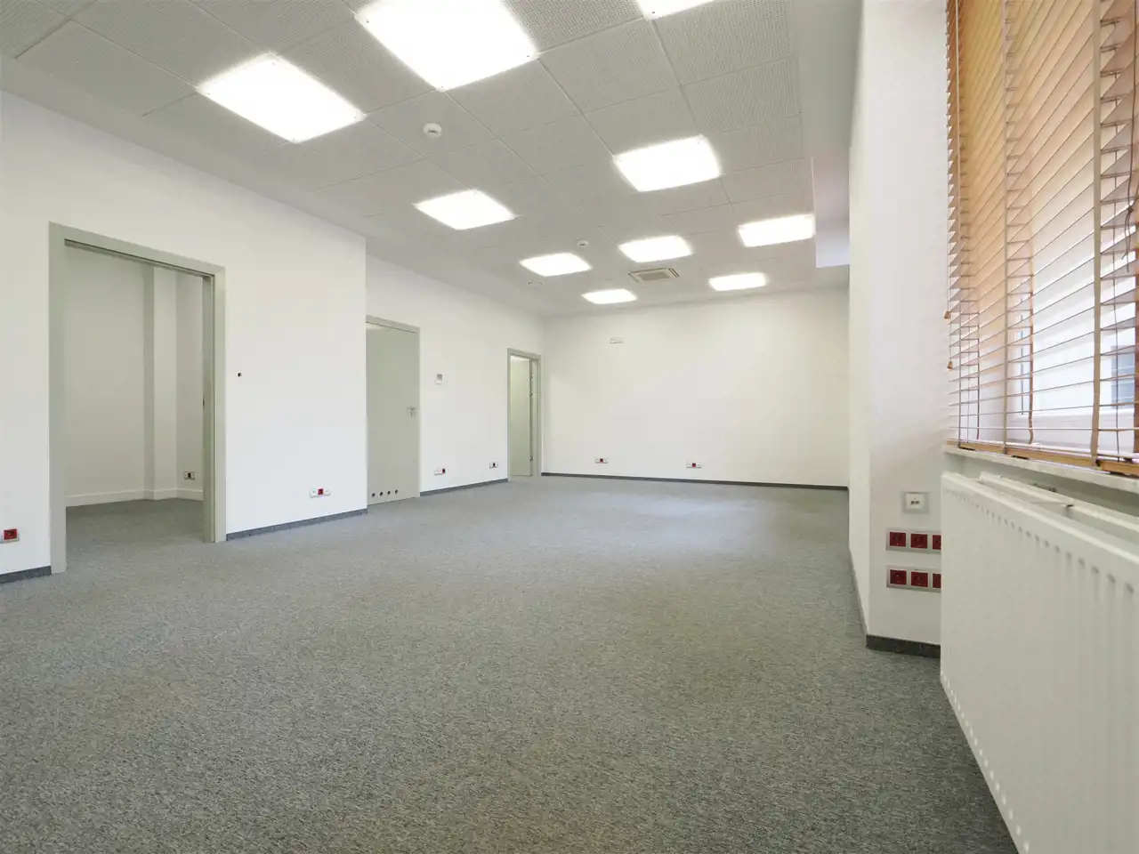 Sekretariat, open space, gabinet, salka konferencyjna, pokój zamknięty, archiwum, serwerownia, kuchnia.