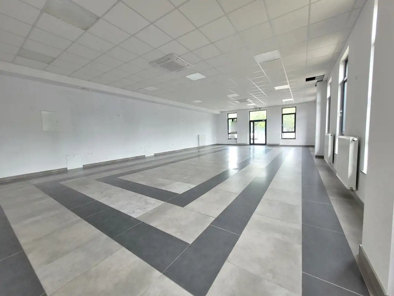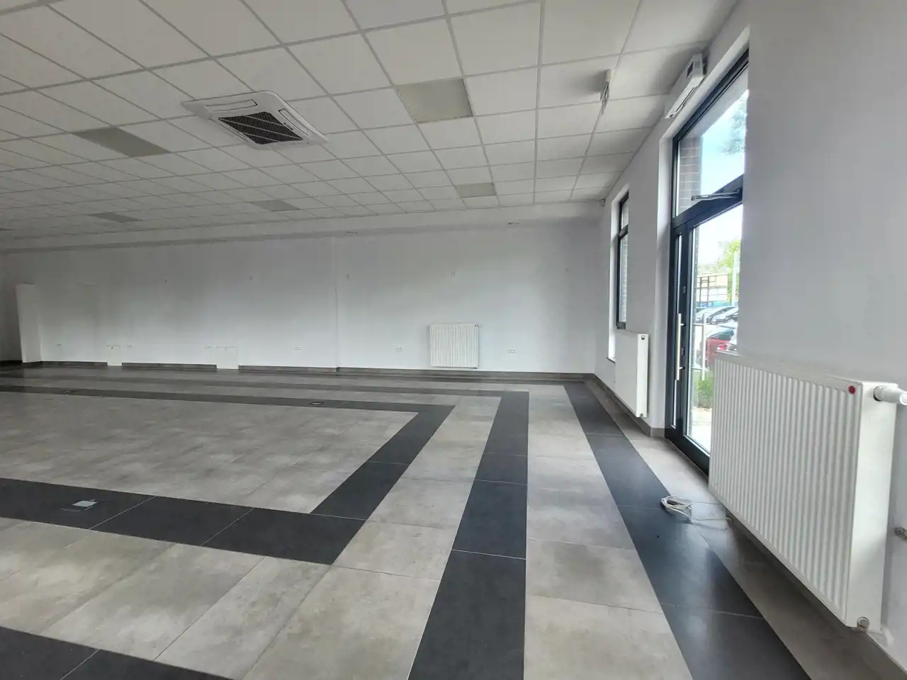 Wysokość lokalu ponad 3 m, dobrze doświetlony, duże witryny, kilka okien na bocznej ścianie i przeszklone drzwi.