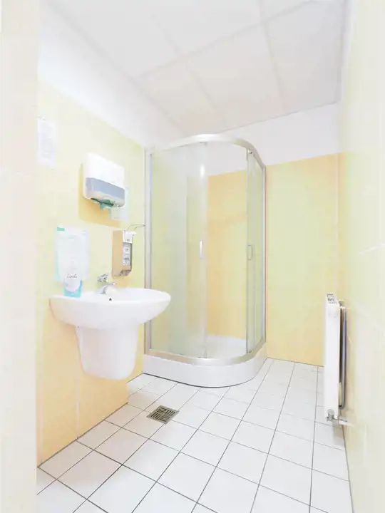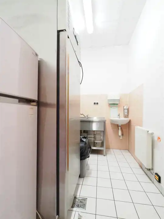 Sala główna, bar, zaplecze kuchenne, pomieszczenia pomocnicze, magazynek, szatnia, łazienka z kabina prysznicową.