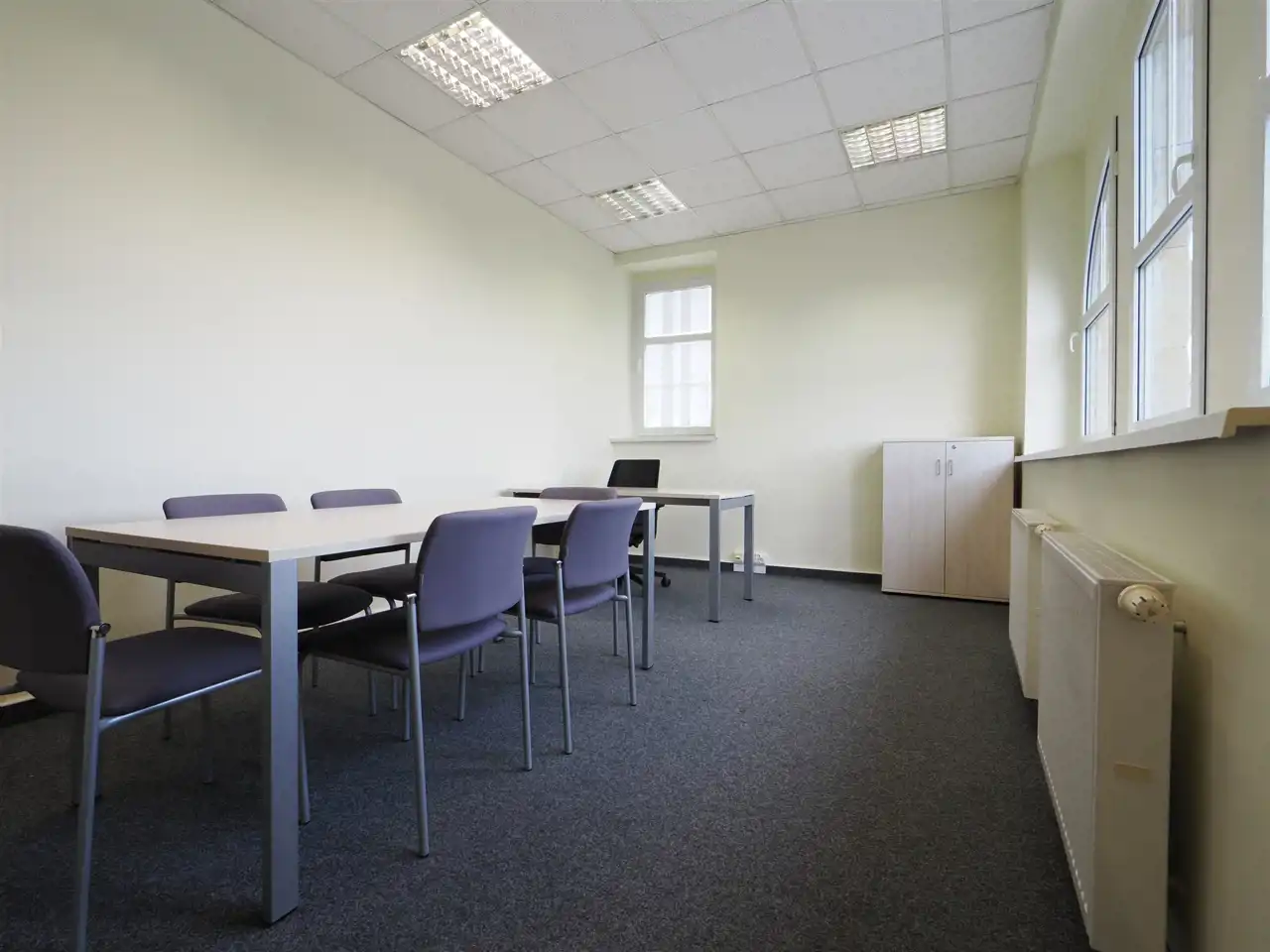 - Pomieszczenia biurowe wyłożone wykładziną dywanową