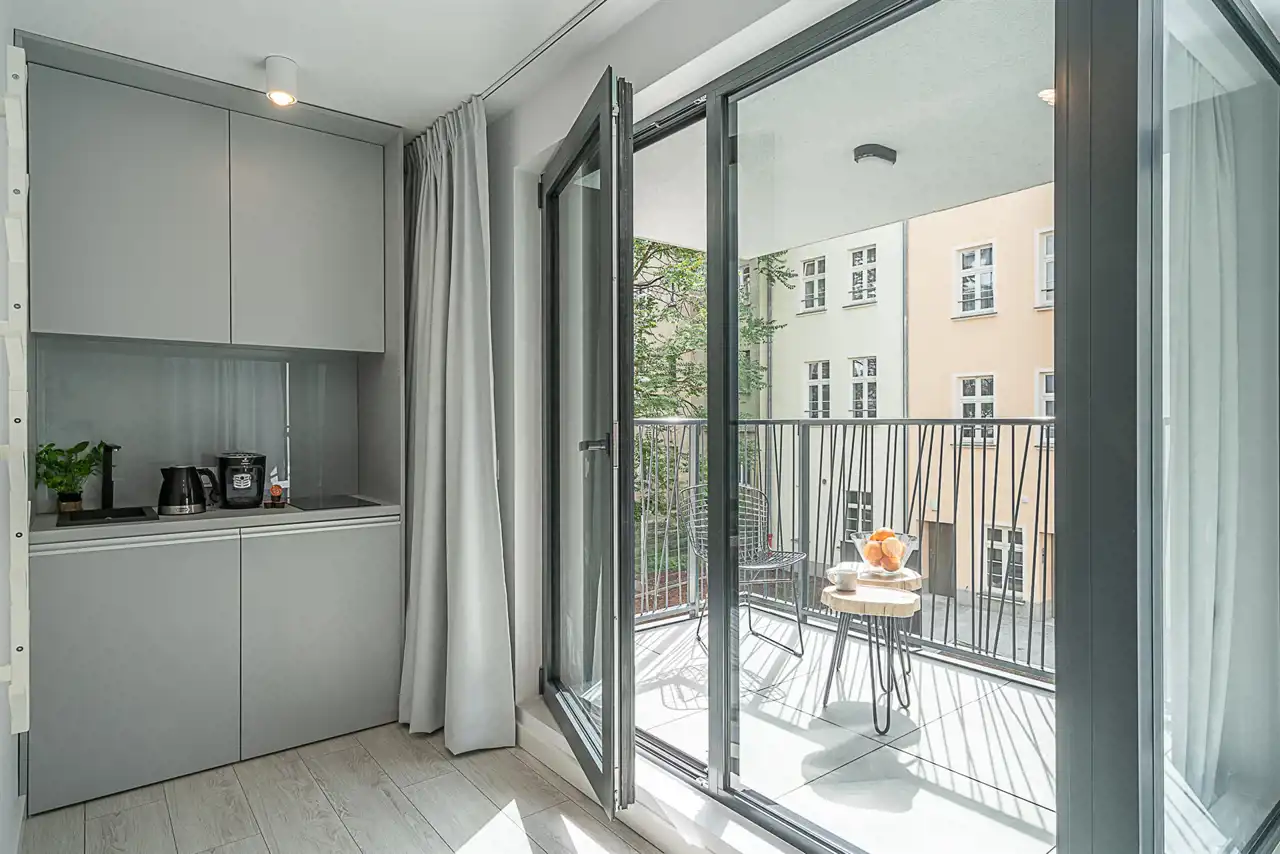 - Metraż: 43,59 m² (z możliwością aranżacji na dwa niezależne mikroapartamenty)