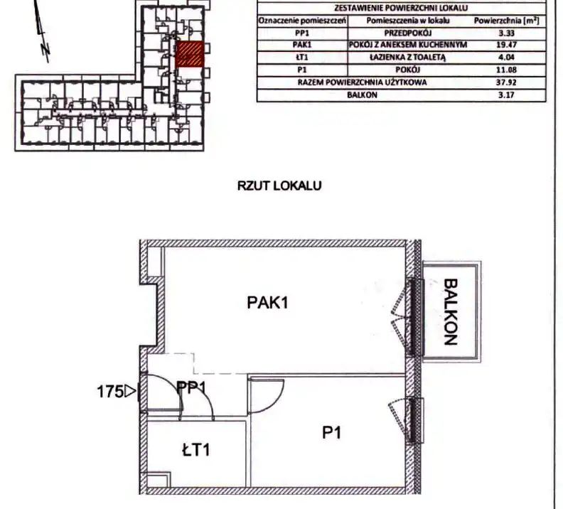 - Charakterystyka mieszkania 37.92 m2, 2 pokoje