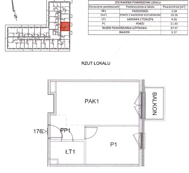 - Charakterystyka mieszkania 37.97 m2, 2 pokoje