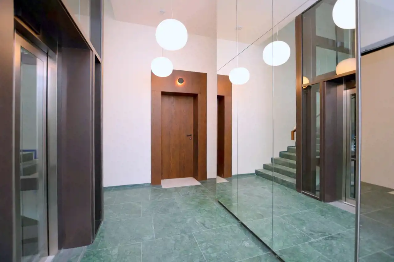 Budynek wykończony materiałami wysokiej jakości, elewacja ceglana po renowacji przeplatana zdobieniami z piaskowca. Drewniane okna, w korytarzach kamienne posadzki w kolorze ciemnej zieleni, na klatkach schodowych, zabytkowe, odrestaurowane, żeliwne balustrady.