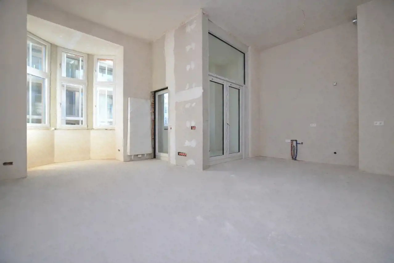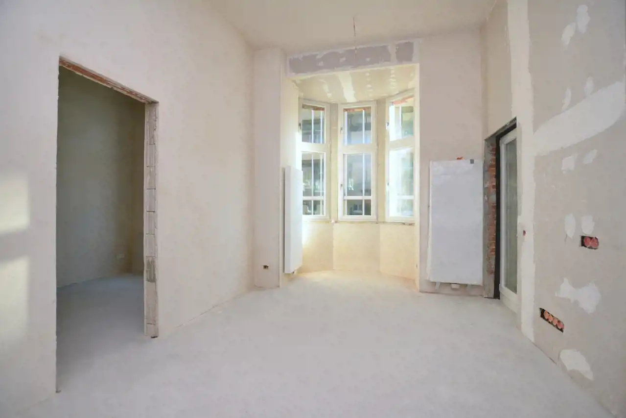 Sam apartament jest bardzo przestronny, wysokość 390 cm. Dodatkowego uroku dodaje wykusz powiększając jego wnętrze i doświetlając je.
