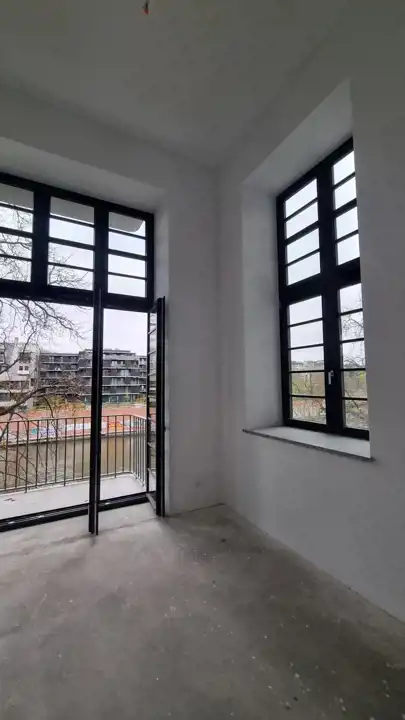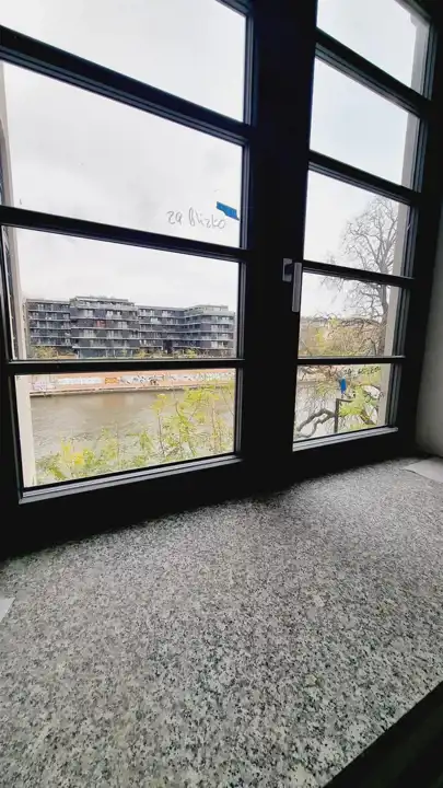 Kameralny budynek z windą, położony nad samą Odrą, na monitorowanym terenie.