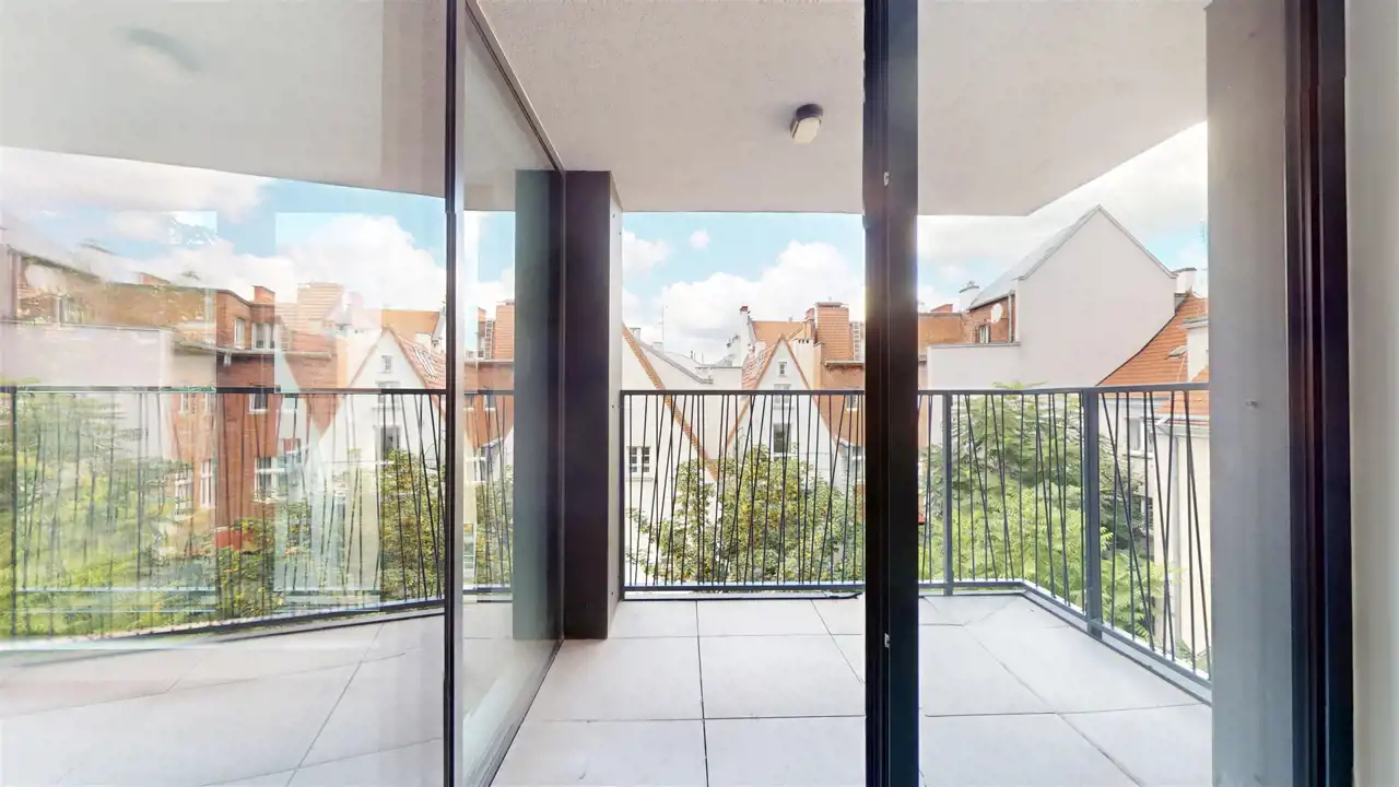 Wnętrze zachwyca przestrzenią i światłem. Panoramiczne przeszklenia w salonie otwierają się na prywatny taras z ekspozycją południową, zapewniając codziennie porcję słońca i widok na ciche patio. To doskonałe miejsce na poranną kawę lub wieczorny relaks w sercu miasta.