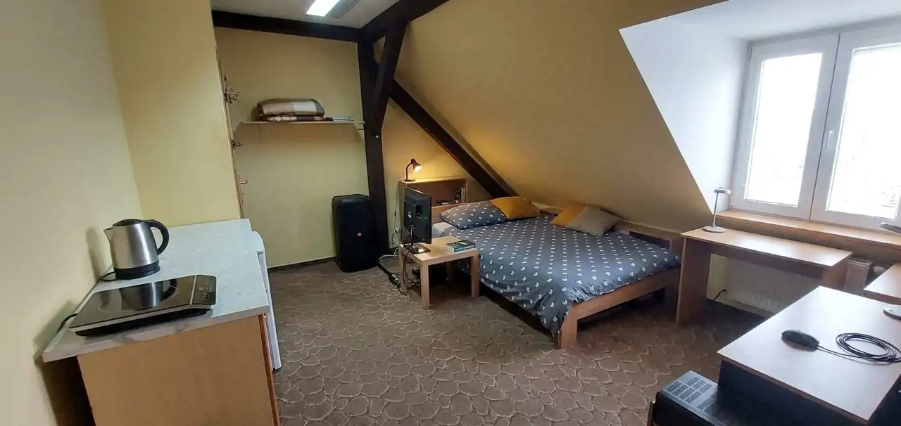 - Piwnica (8m2) oraz pomieszczenie na strychu.
