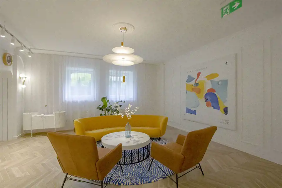Mieszkanie dwustronne: salon – zachód, sypialnia – północ. Mieszkanie wyróżnia unikalna wysokość ponad - 3,5 m2.