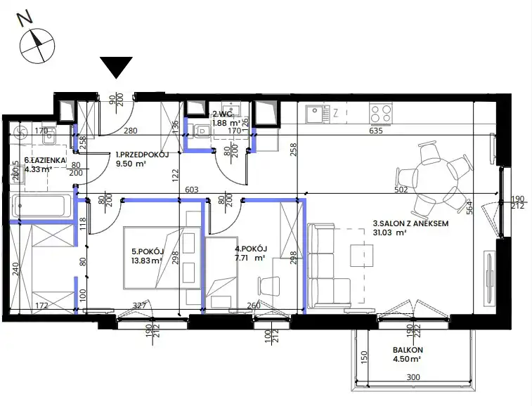 - Charakterystyka mieszkania 68.1 m2, 3 pokoje
