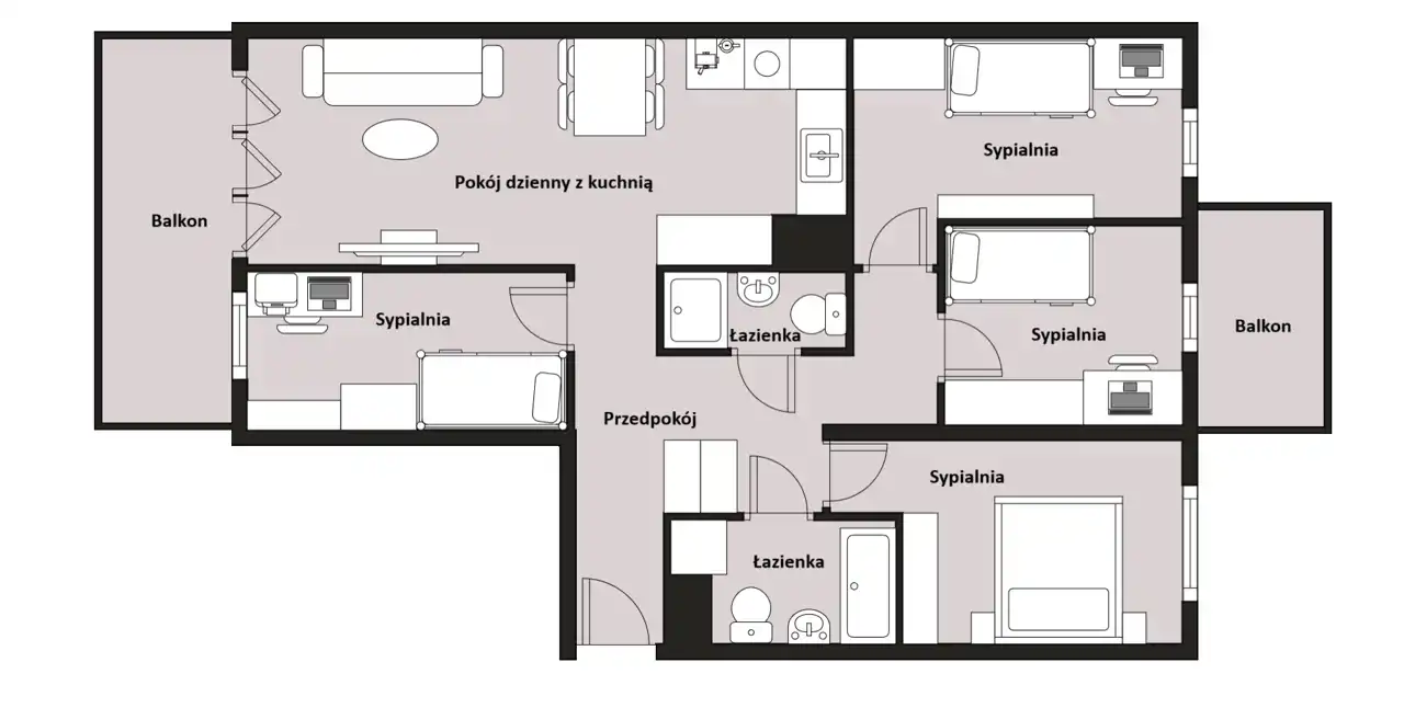 Każde mieszkanie zaprojektowane jest z myślą o funkcjonalności i komforcie mieszkańców.