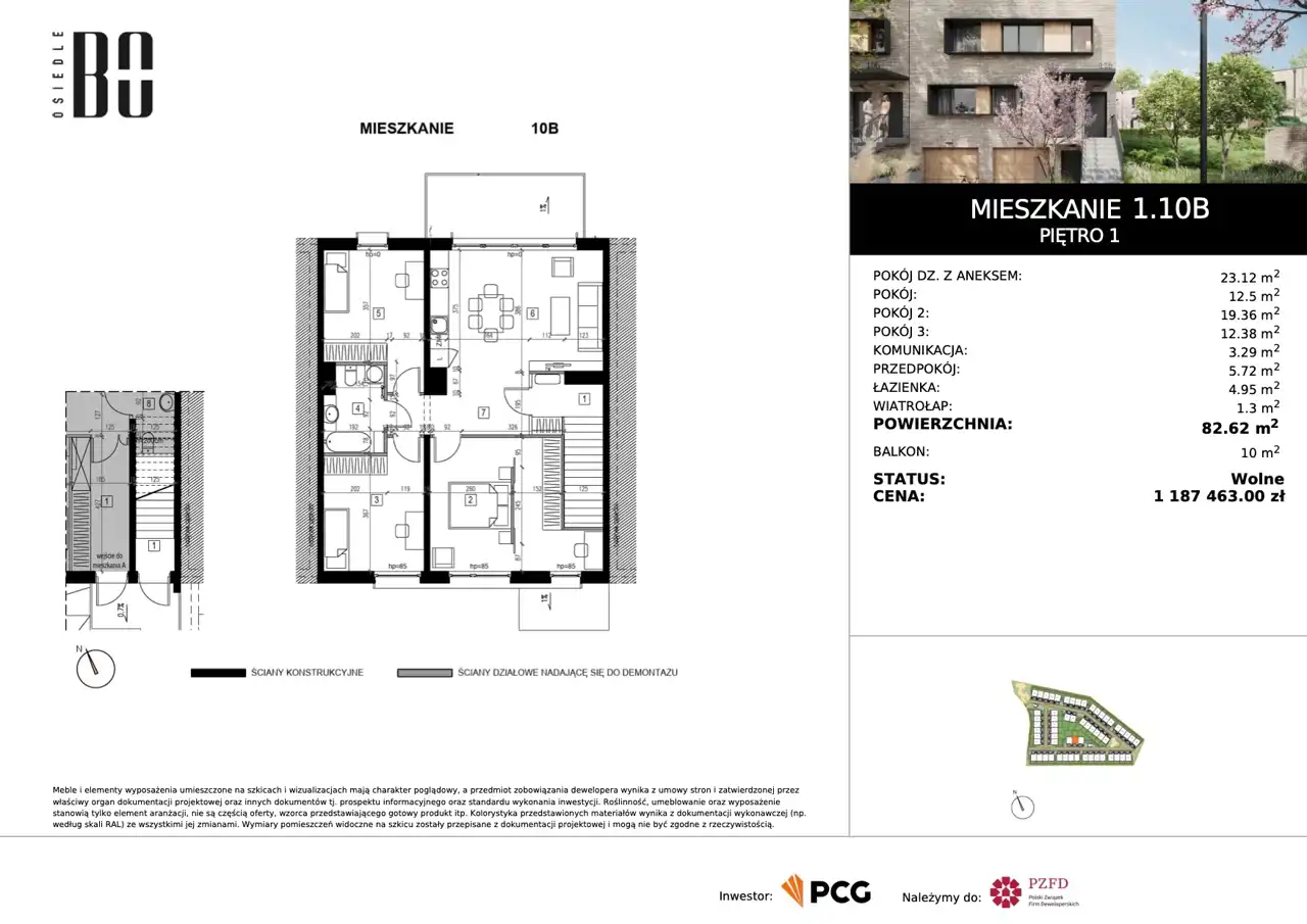 Apartament 4-pokojowy o powierzchni 82,62 m2 z balkonem, 4 pokoje, numer 1.10B na 1 pietrze w nowoczesnym kompleksie mieszkaniowym położonym na wrocławskich Kowalach.