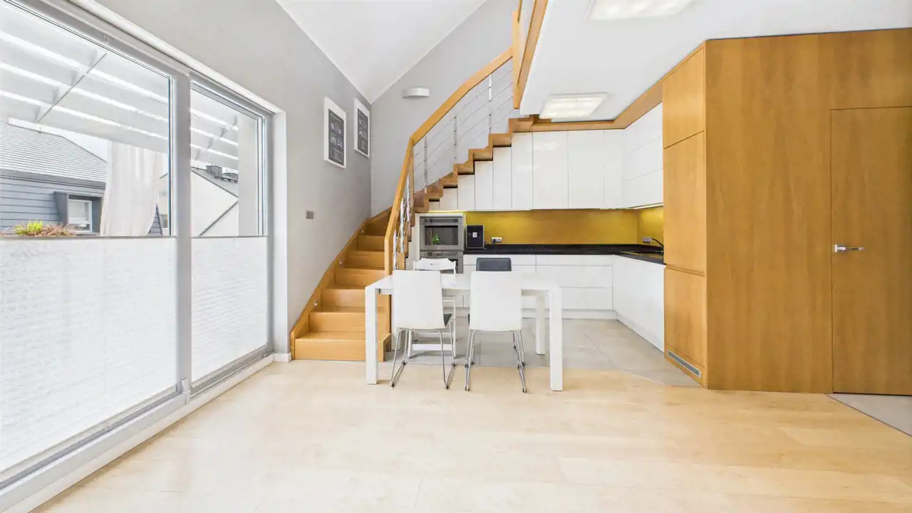 Na sprzedaż przestronne, komfortowe mieszkanie dwupoziomowe o powierzchni ok. 89 m², zlokalizowane przy cichej, nieprzejezdnej uliczce. Mieszkanie znajduje się na 2. piętrze w nowoczesnym budynku z 2014 roku.