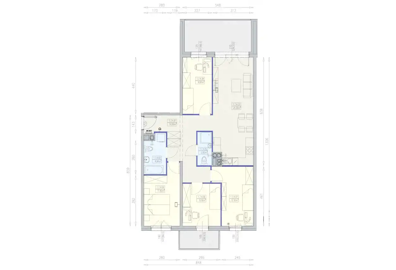 - Charakterystyka mieszkania 91.32 m2, 5 pokoi