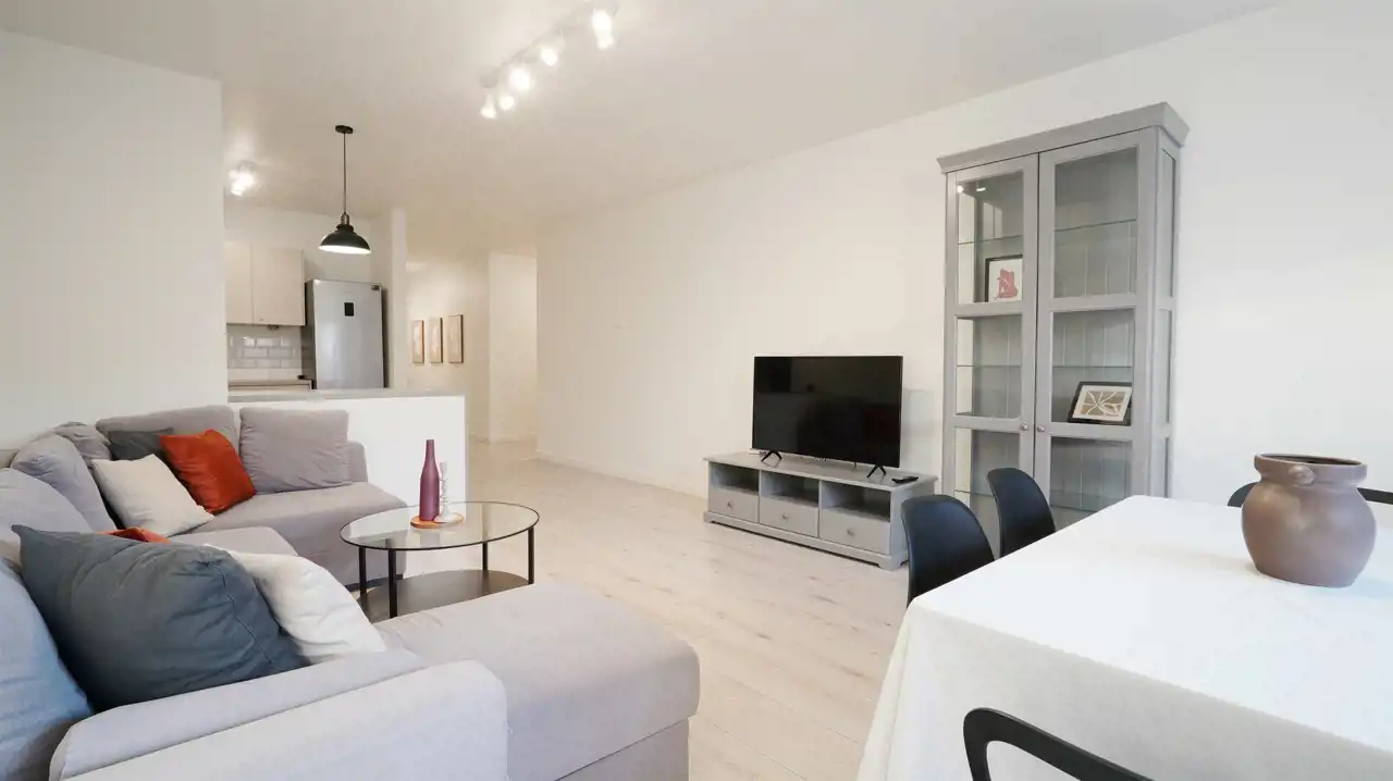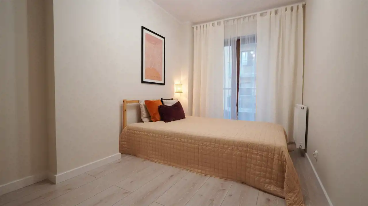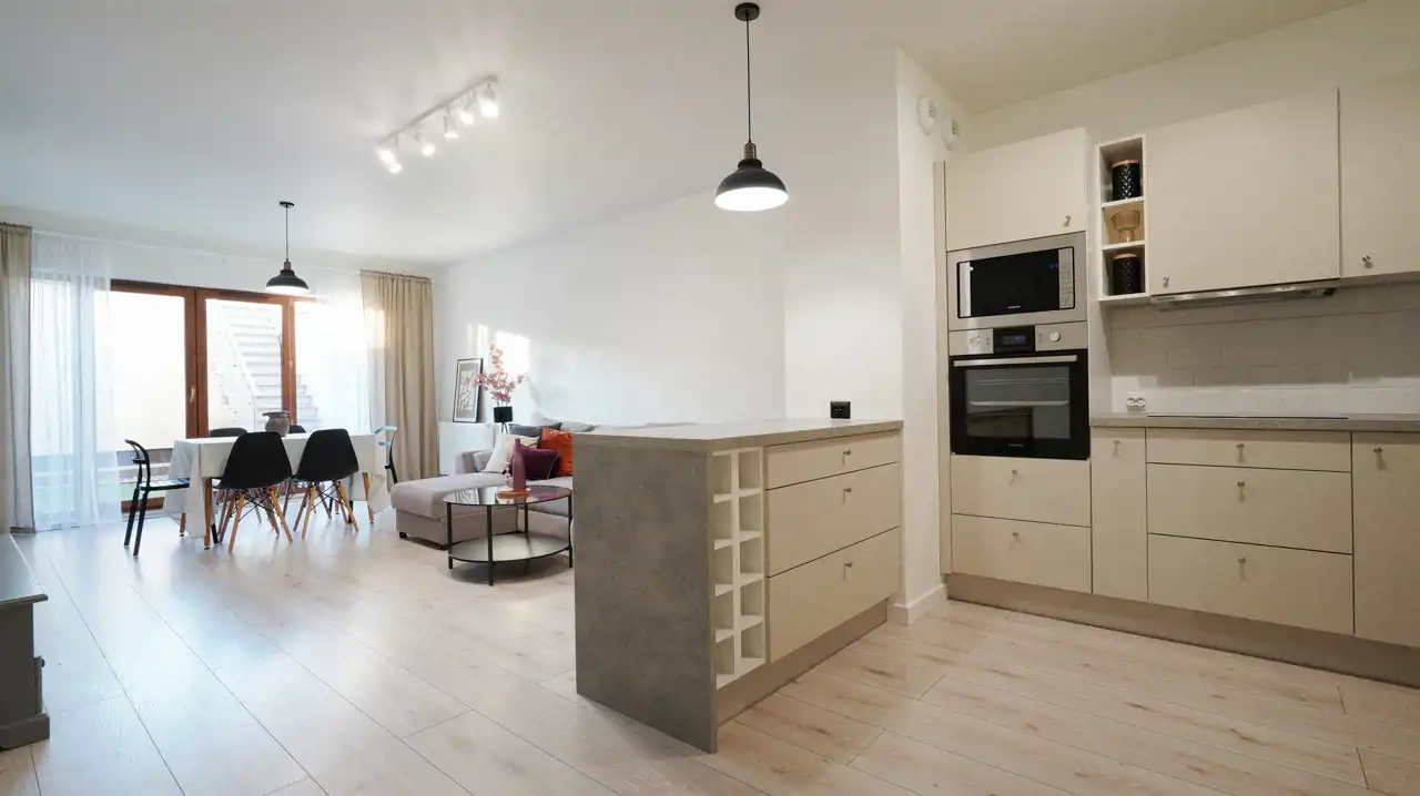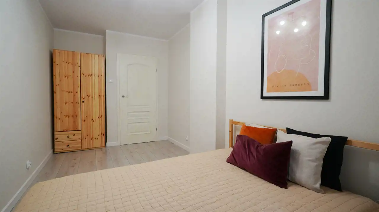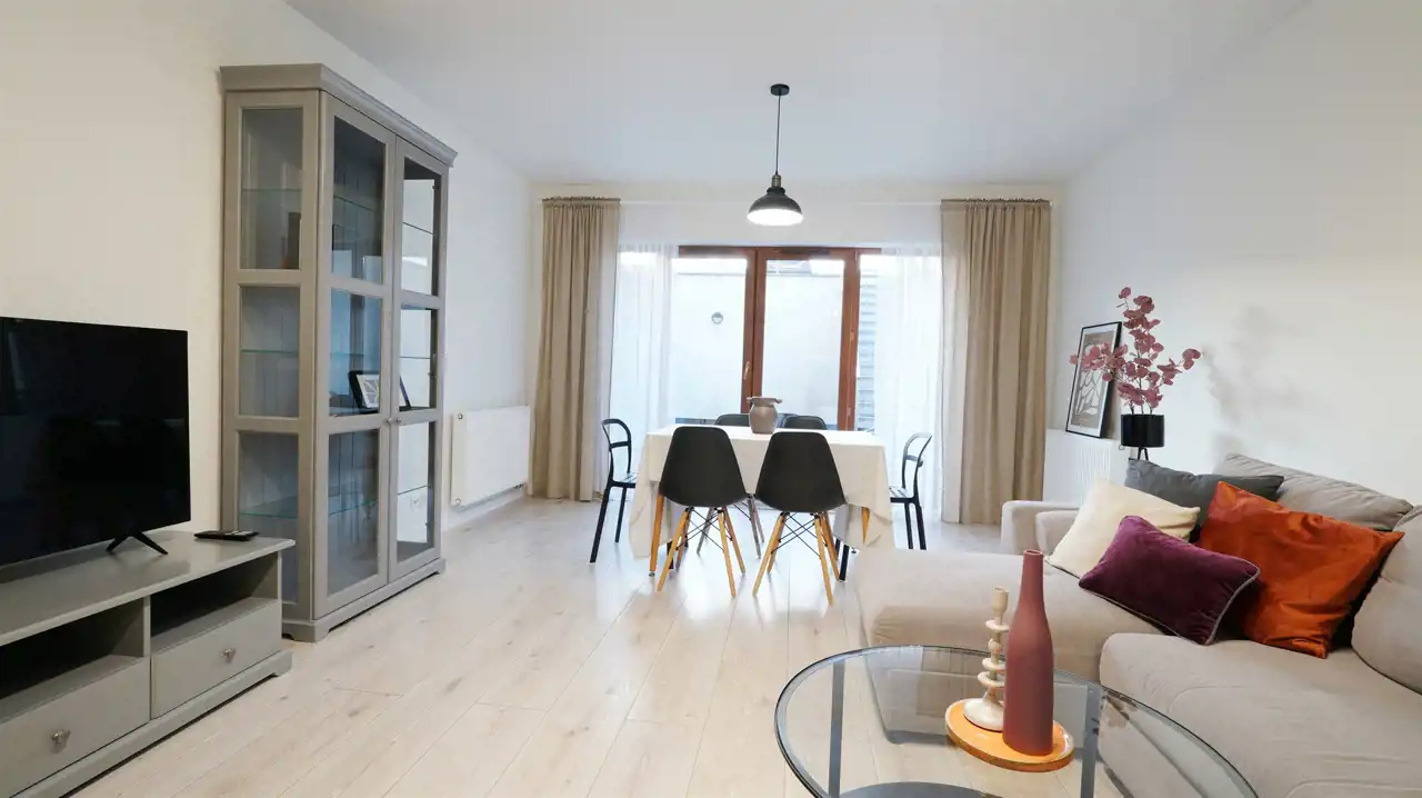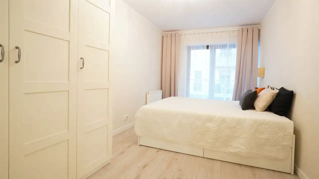 Mieszkanie jest bardzo funkcjonalne zapewnia duży komfort pod względem wygody i warunków do odpoczynku. Nie słychać ulicy. Ekspozycja okien od strony wschód i zachód. Jest w pełni umeblowane i wyposażone: pralka, zmywarka, piekarnik, płyta indukcyjna, wanna, armatura łazienkowa i kuchenna.