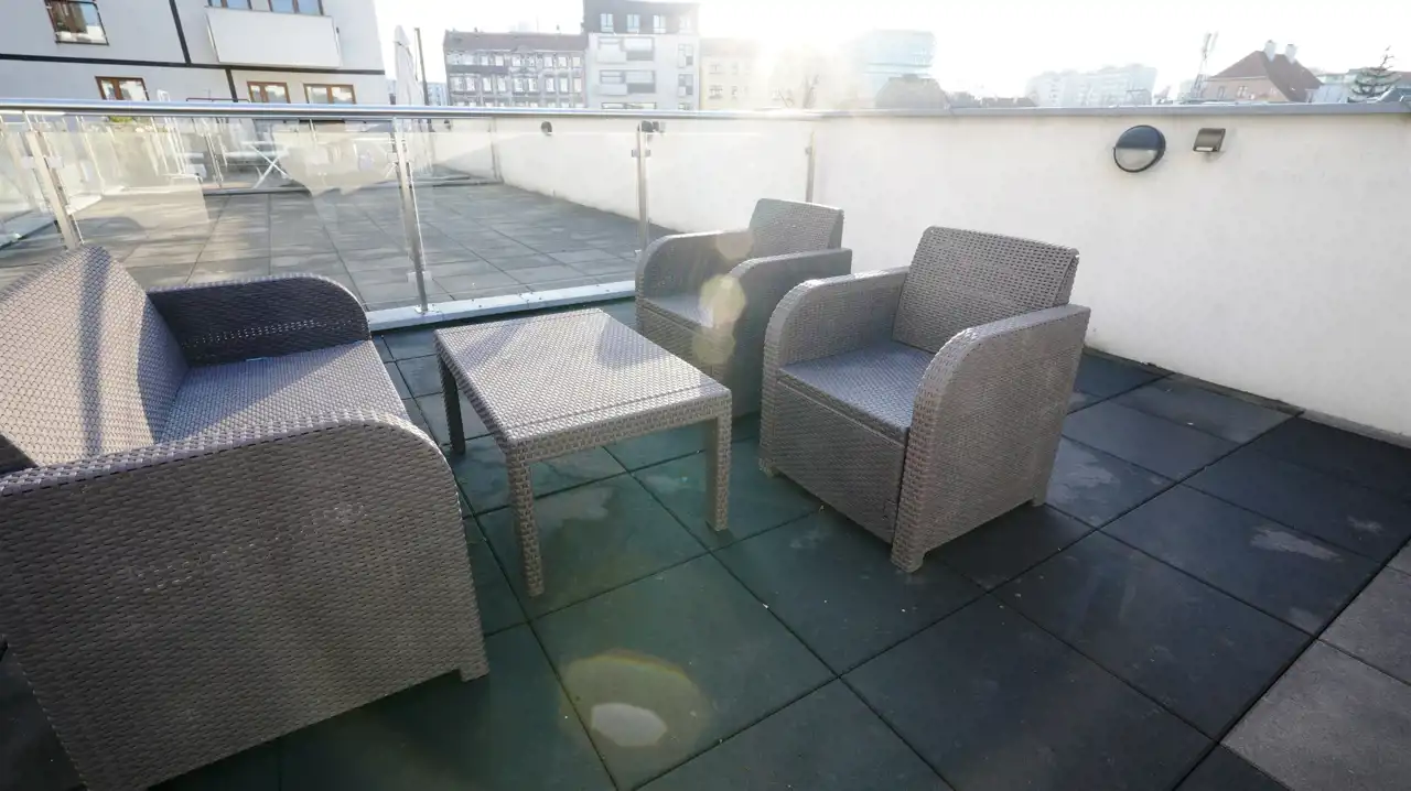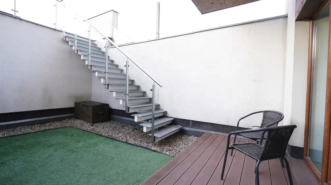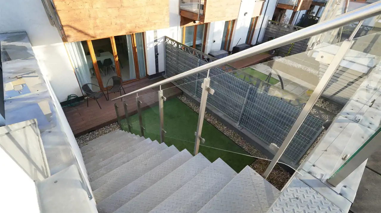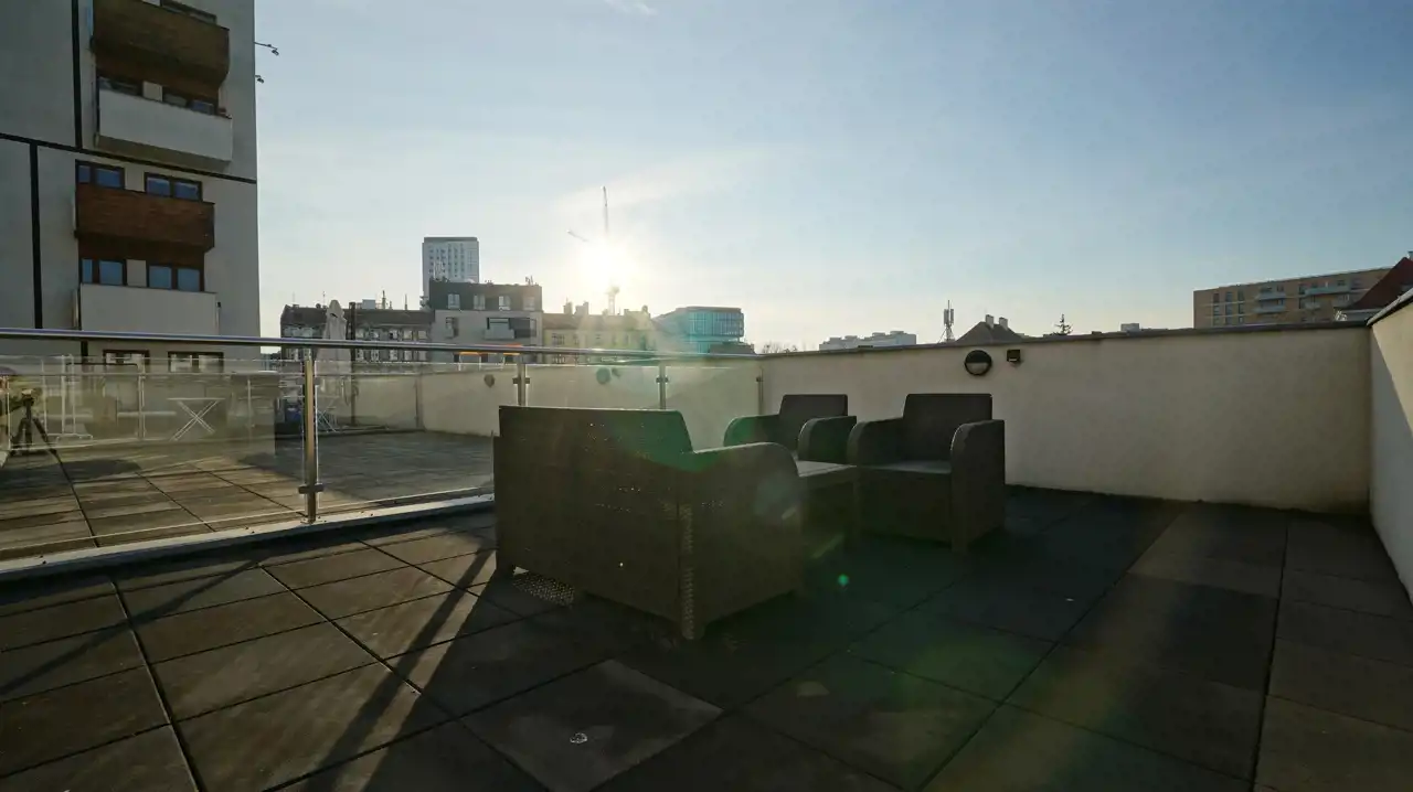 Do dyspozycji duży taras 2-poziomowy z którego można obserwować zachody słońca. Do dyspozycji również balkon z którego można korzystać od strony dwóch sypialni - jest osłonięty i wychodzi od strony Patio, dzięki czemu jest cicho. Gotowe do zamieszkania lub wynajęcia w krótkim czasie.
