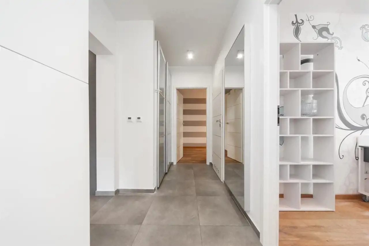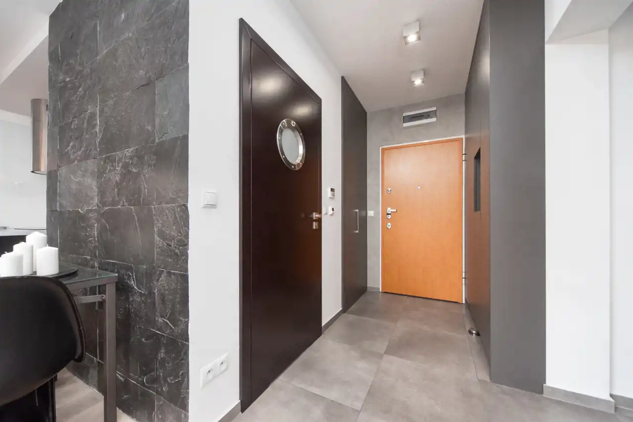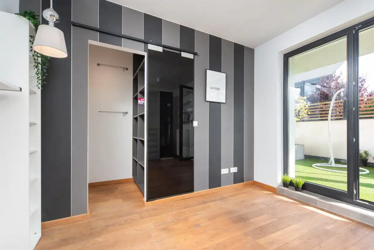 - 7 m2 przedpokoju z licznymi szafami w zabudowie