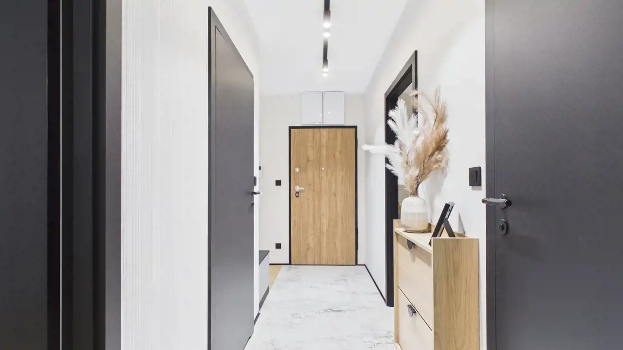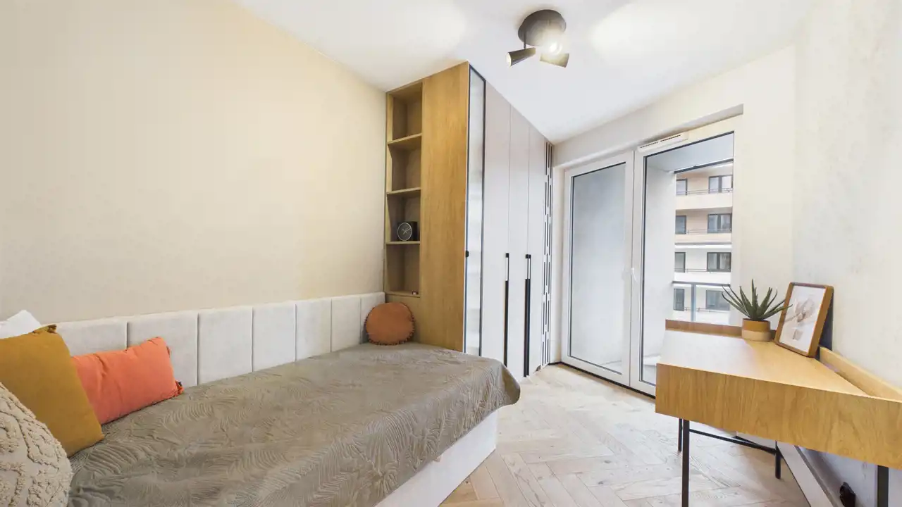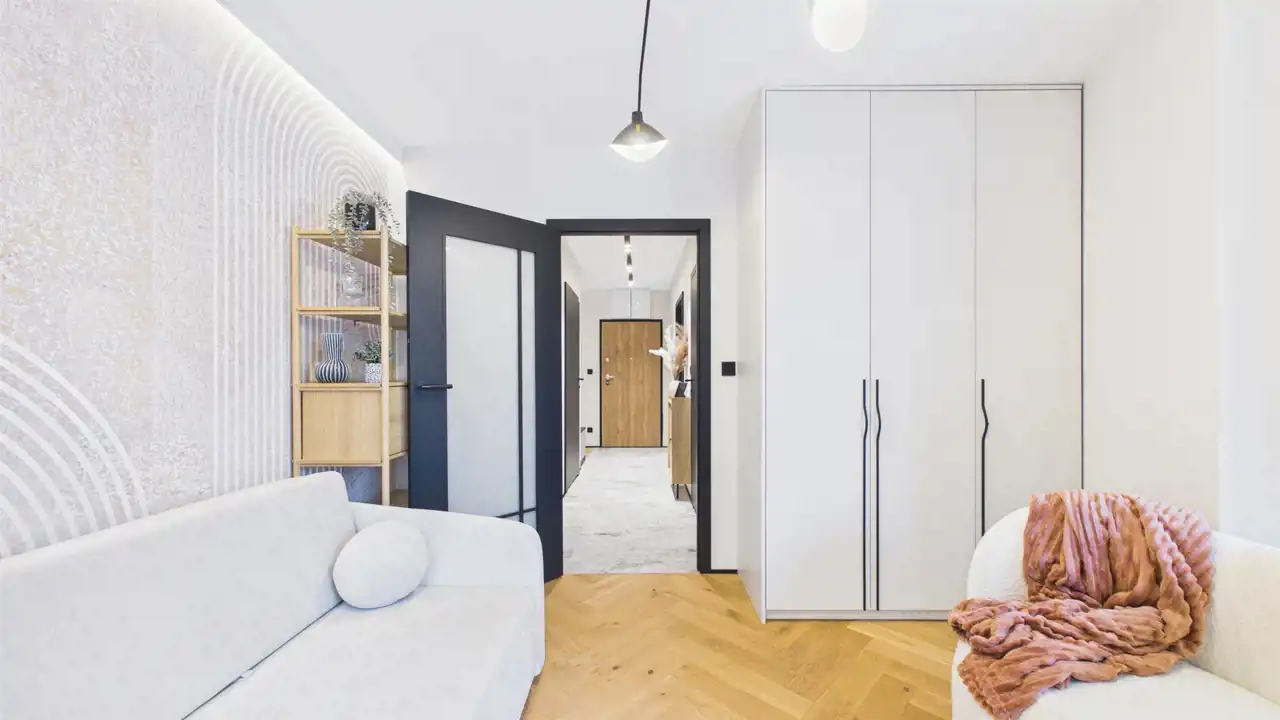 - Wysoka jakość detali: Od starannie zaprojektowanego aneksu kuchennego, przez stylową sypialnię, aż po funkcjonalny przedpokój – każdy metr kwadratowy został urządzony z pasją do designu.