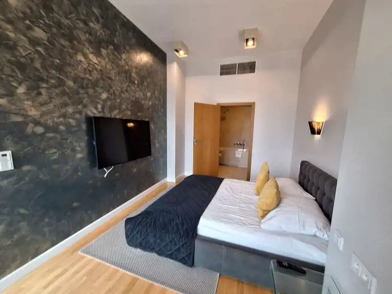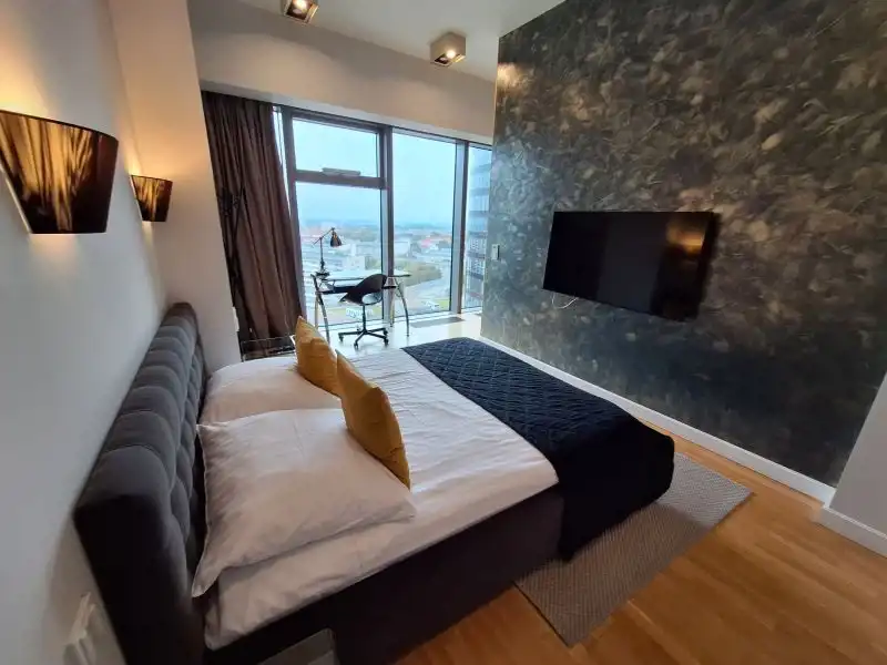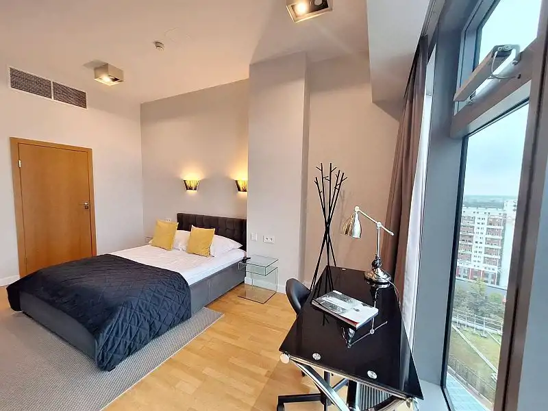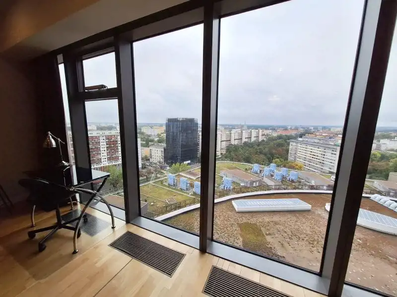 Wysokość pomieszczeń ponad 3m, apartament posiada spektakularny widok na panoramę miasta od strony wschodniej (Stare Miasto), wykończony i umeblowany został w najwyższym standardzie z materiałów wysokiej jakości. Posiada idealny rozkład pomieszczeń z podziałem na strefę dzienną i nocną (dodatkowa toaleta, z sypialni przejście do łazienki).