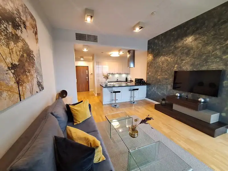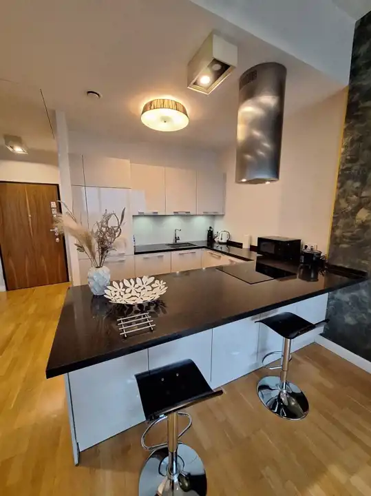 Apartament sprzedawany z pełnym umeblowaniem i wyposażeniem widocznym na zdjęciach, możliwość kontynuowania współpracy z firmą zarządzającą wynajmem.