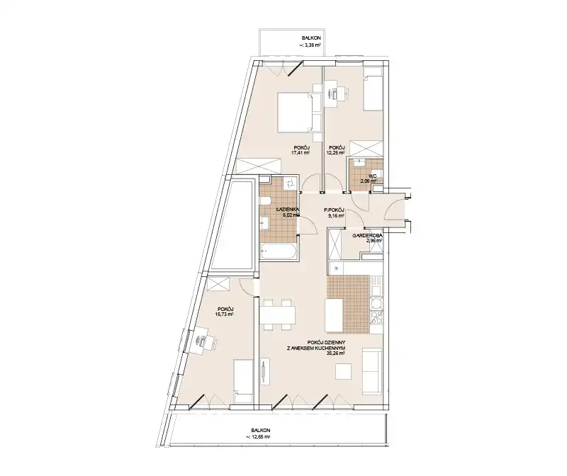 - Charakterystyka mieszkania 100.85 m2, 4 pokoje