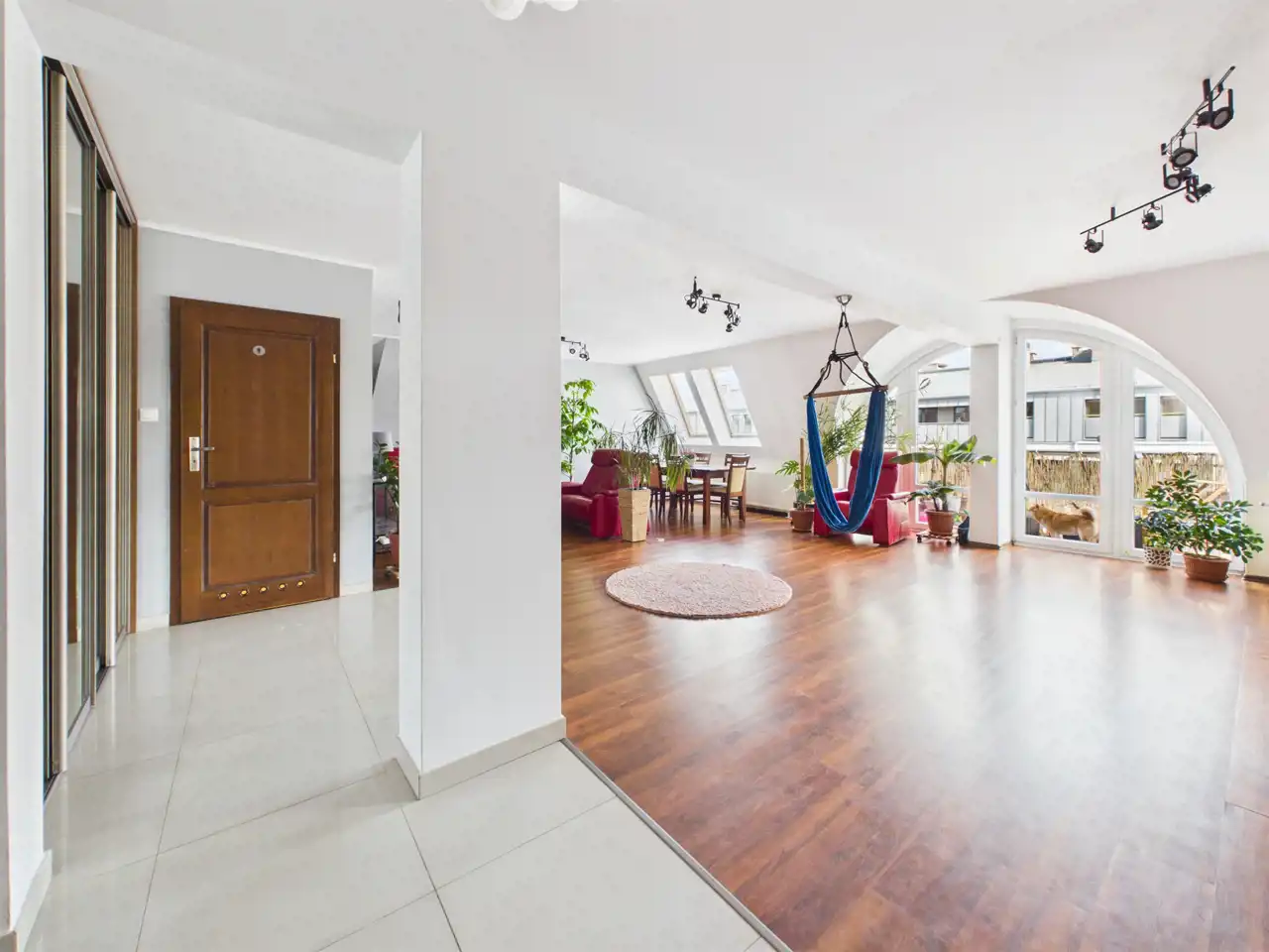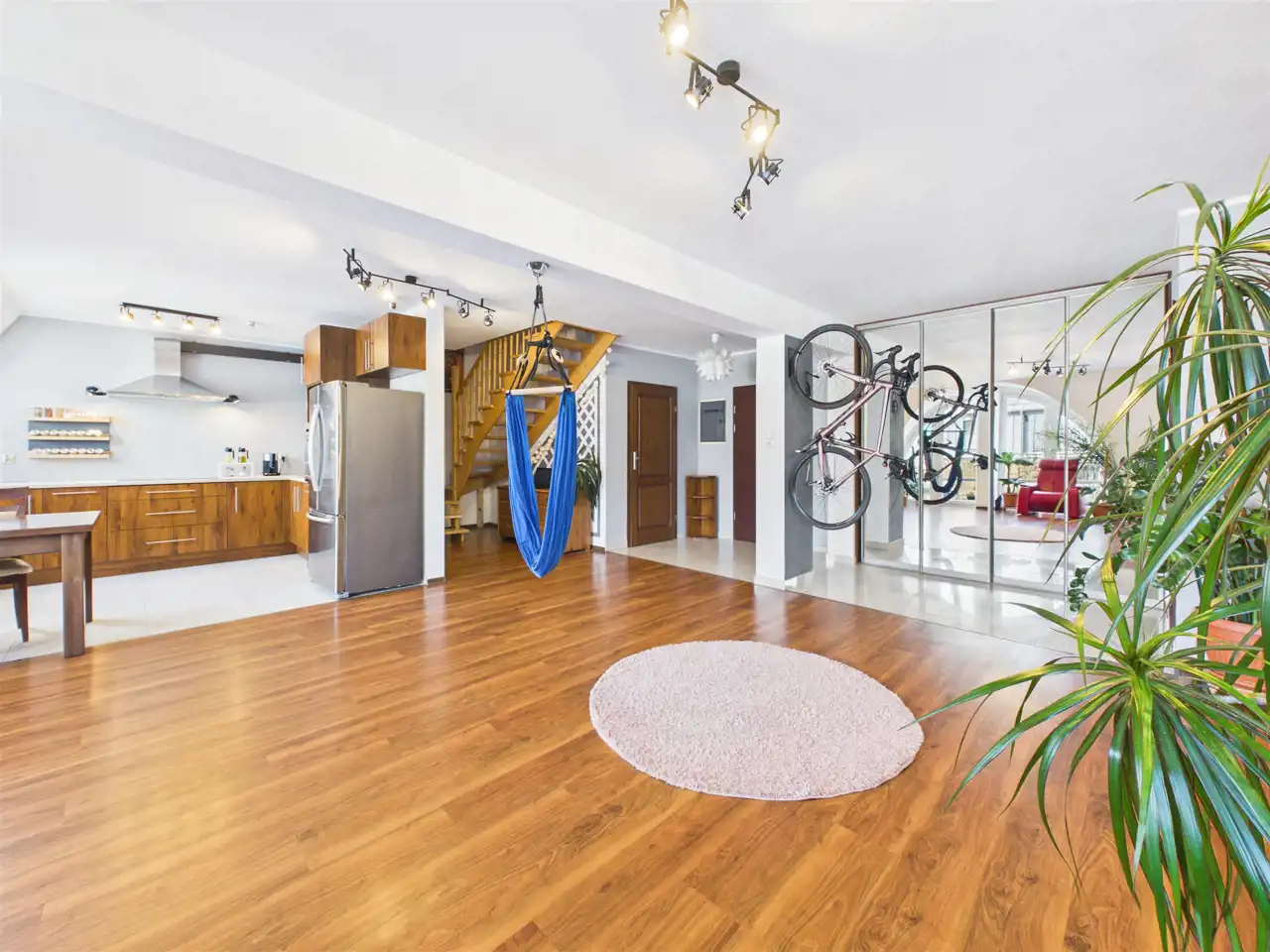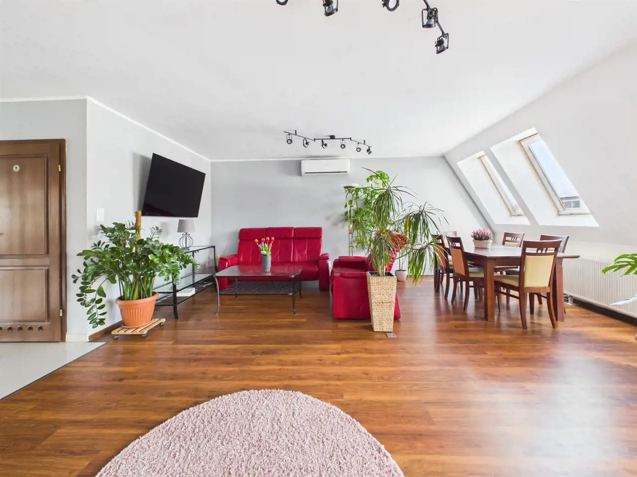 - Salon z dużą ilością światła i przestrzeni (można wydzielić jeszcze jeden pokój w razie potrzeb bez uszczerbku na przestrzeni)