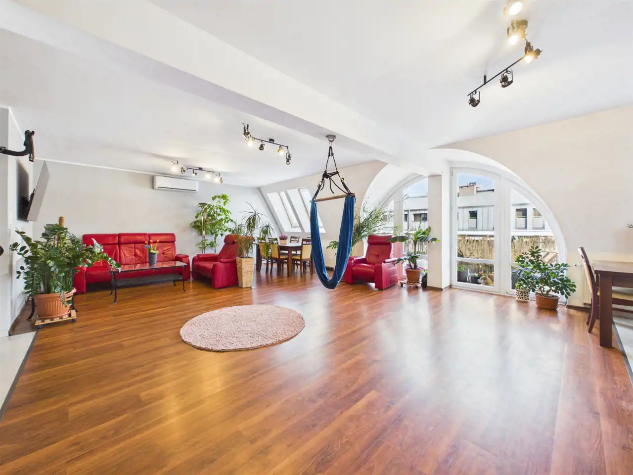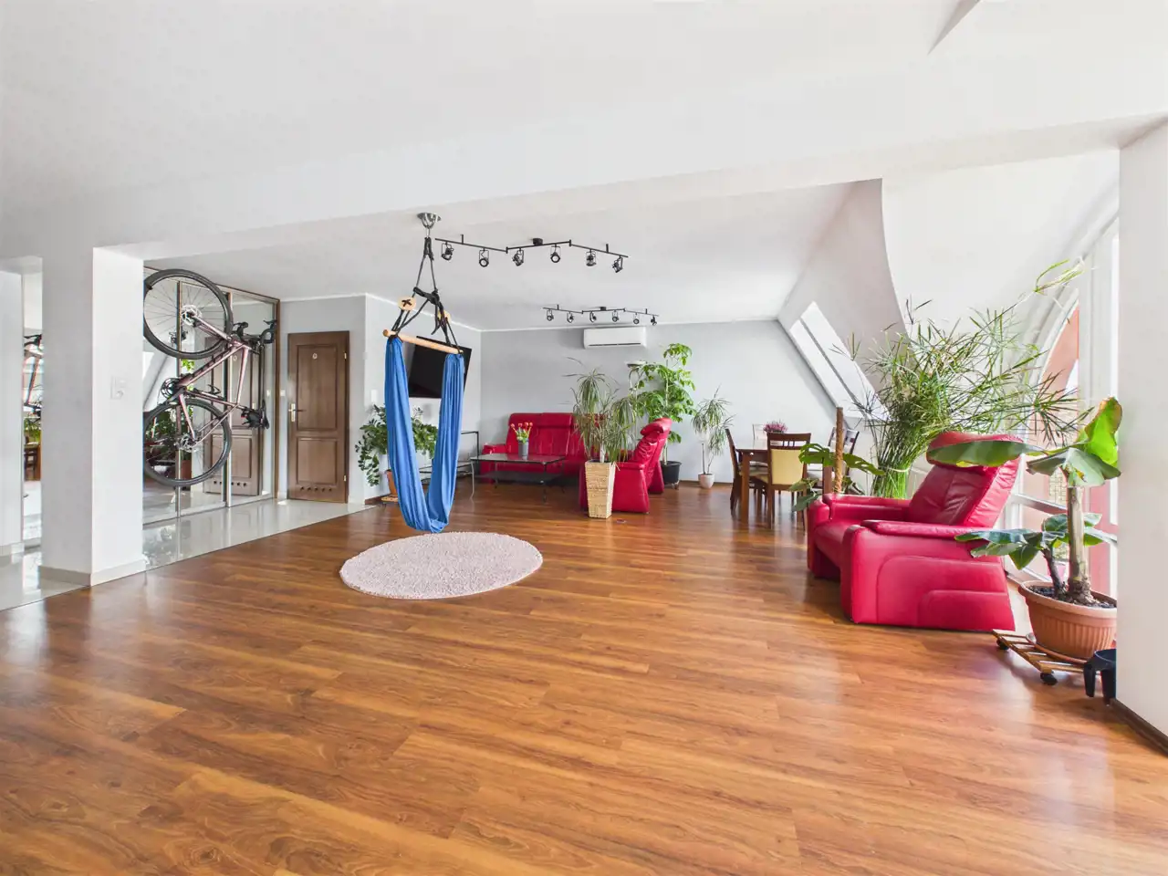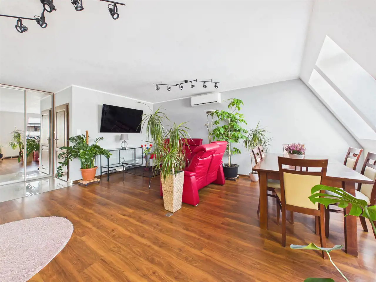 - Salon z dużą ilością światła i przestrzeni (można wydzielić jeszcze jeden pokój w razie potrzeb bez uszczerbku na przestrzeni)