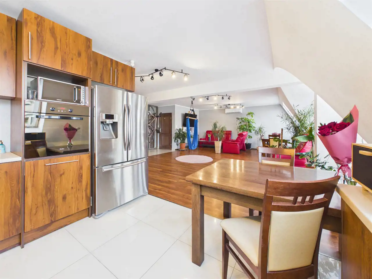 - Ustawna kuchnia z podwójną lodówką, piekarnikiem, zmywarką - idealnie dla dużej rodziny,