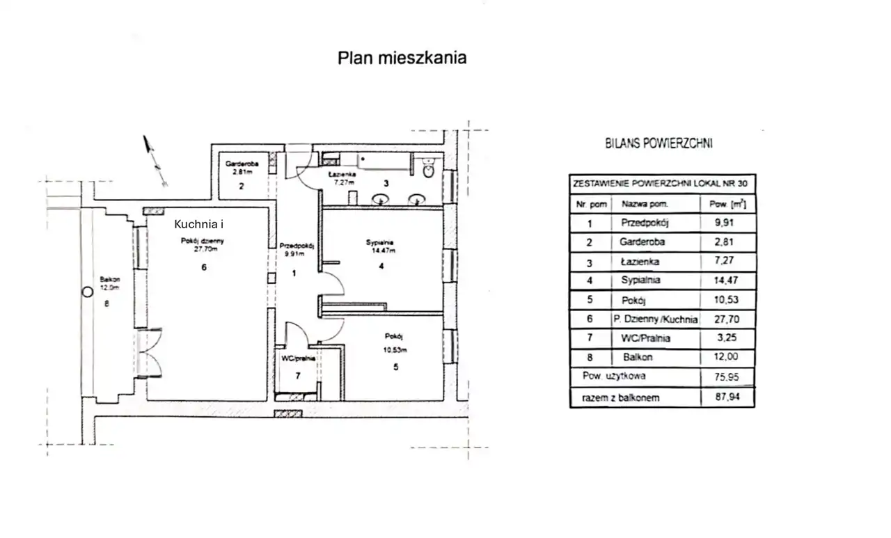 - Charakterystyka mieszkania 75.94 m2, 3 pokoje
