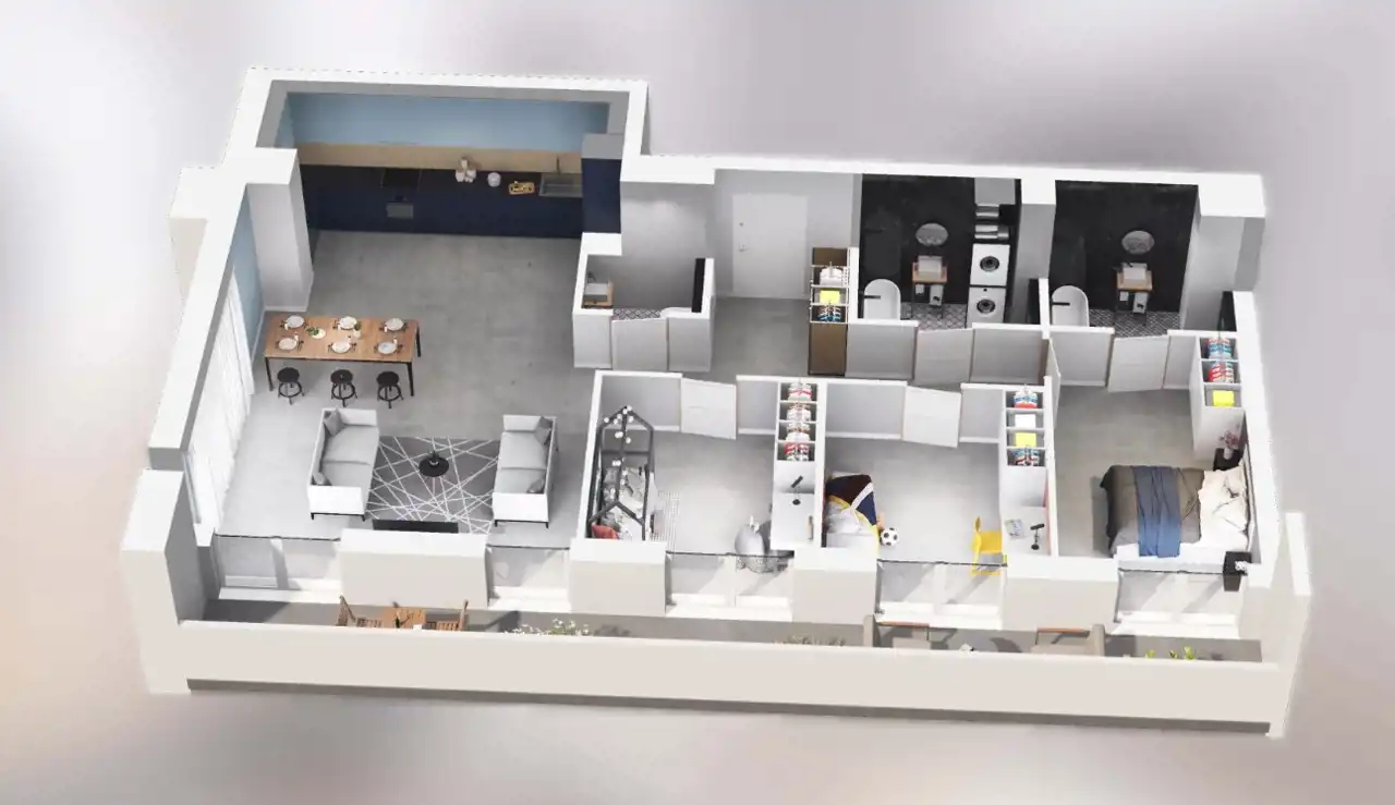- idealny układ dla rodziny, osób pracujących z domu albo pod wynajem