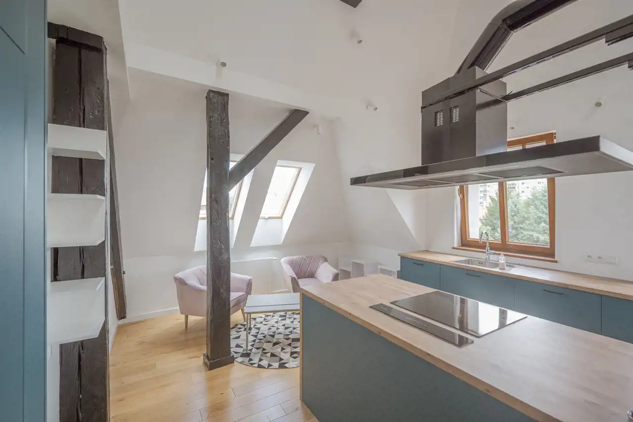Ciekawe mieszkanie z antresolą na ostatniej kondygnacji odrestaurowanej willi.
