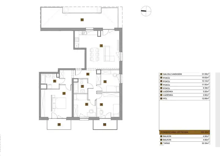 - Charakterystyka mieszkania 104.4 m2, 5 pokoi