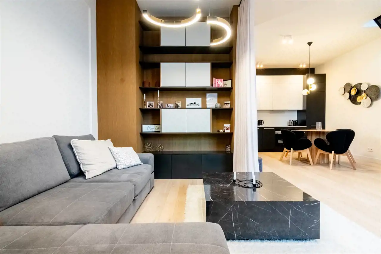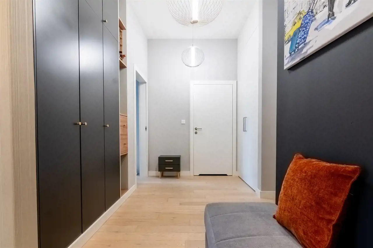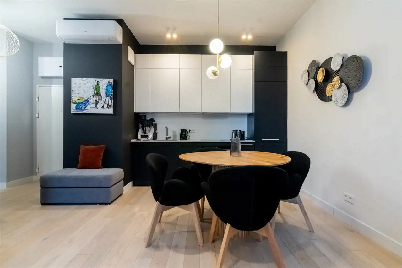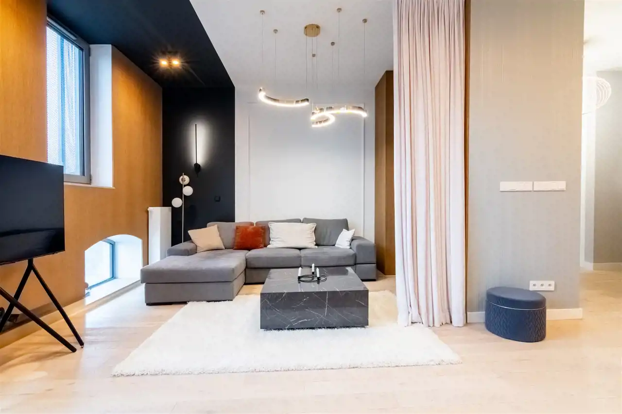 - Szlachetne materiały - Wnętrze wykończone z najwyższej jakości materiałów, w tym prawdziwego drewna, podkreśla ekskluzywny charakter apartamentu i gwarantuje trwałość na lata.