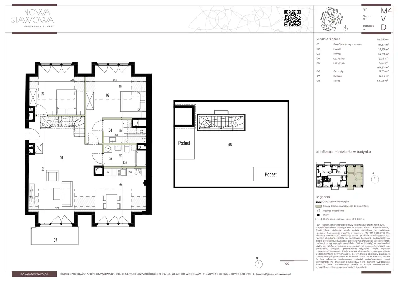 Na sprzedaż wyjątkowa nieruchomość o powierzchni 95,87 m², położoną na 5. piętrze nowoczesnej inwestycji w ścisłym centrum Wrocławia. Wyjątkowy, loftowy apartament w prestiżowej inwestycji Nowa Stawowa we Wrocławiu – w samym centrum miasta, w kwartale ulic Stawowej, Kościuszki, Kołłątaja i Rejtana. To rewitalizowany kompleks post-fabrycznych budynków z industrialnym charakterem, łączący historię z nowoczesnym stylem życia. W okolicy doskonała infrastruktura, liczne tramwaje i autobusy oraz kilka minut spacerem do Dworca Głównego, Rynku i Parku Staromiejskiego.