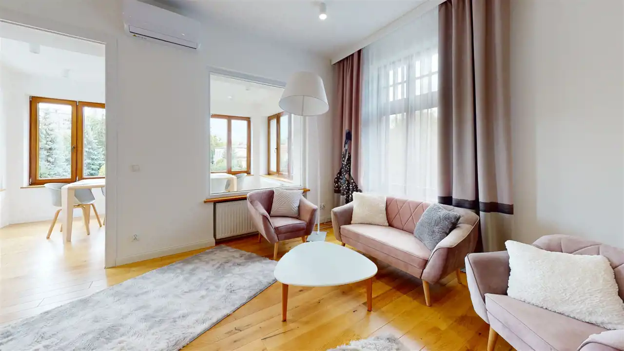 Oferowana nieruchomość łączy elegancję i uniwersalny styl. Wnętrze zachwyca przemyślanym układem pomieszczeń, które gwarantują optymalne wykorzystanie każdego metra kwadratowego. Apartament zajmuje całą kondygnację budynku.