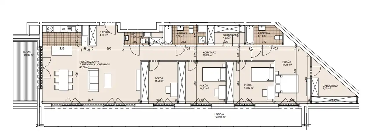 Mieszkanie o powierzchni około 153 m2 składa się z: