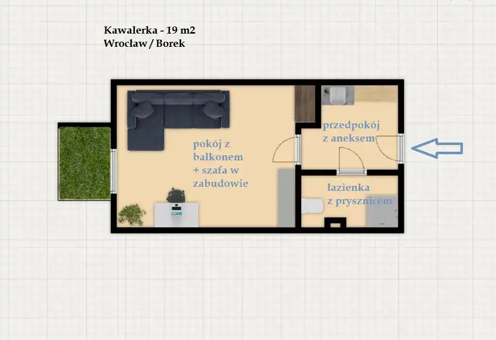 Kawalerka z balkonem przy Parku Południowym | 19 m² | Wrocław – Borek | ul. Dębowa