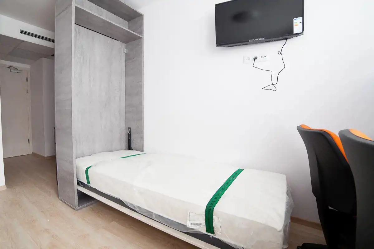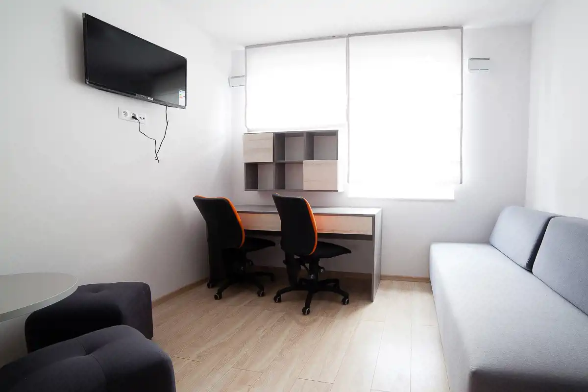 Klimatyzowany apartament typu studio – pokój z aneksem kuchennym i łazienką. Nowoczesne wykończenie, gotowy do zamieszkania lub wynajmu od zaraz.