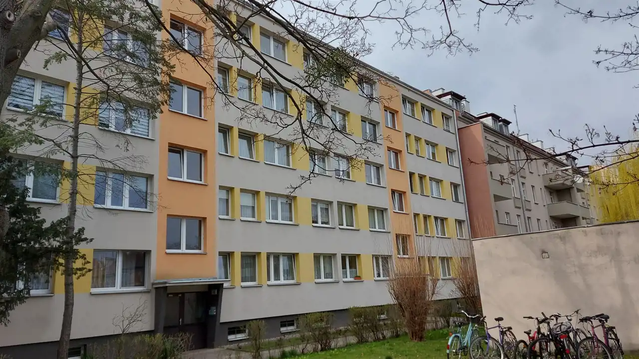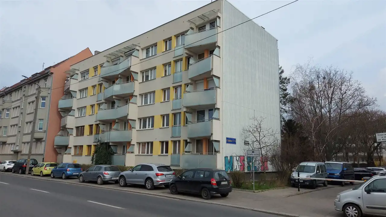 - Budynek jest pięciokondygnacyjny, podpiwniczony, wybudowany w 1976 roku w technologii prefabrykowanej (wielka płyta), z płaskim stropodachem.