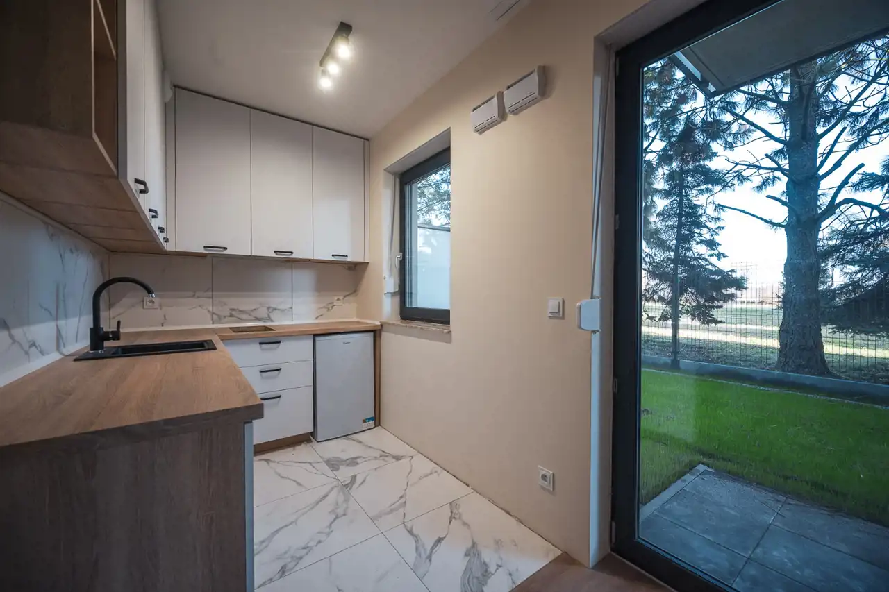 - Zielona strefa relaksu z miejscem na wypoczynek i grill.