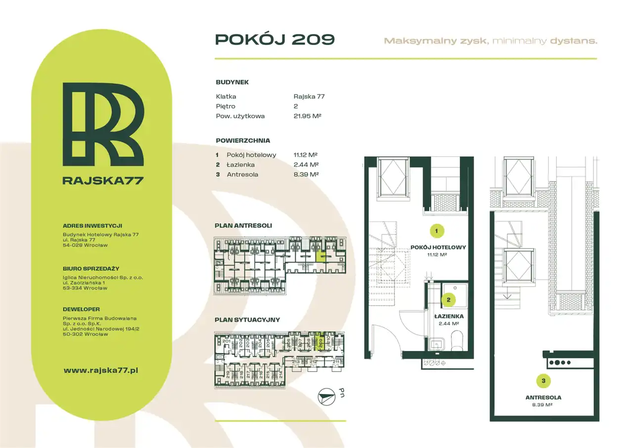- Charakterystyka mieszkania 21.95 m2, 2 pokoje