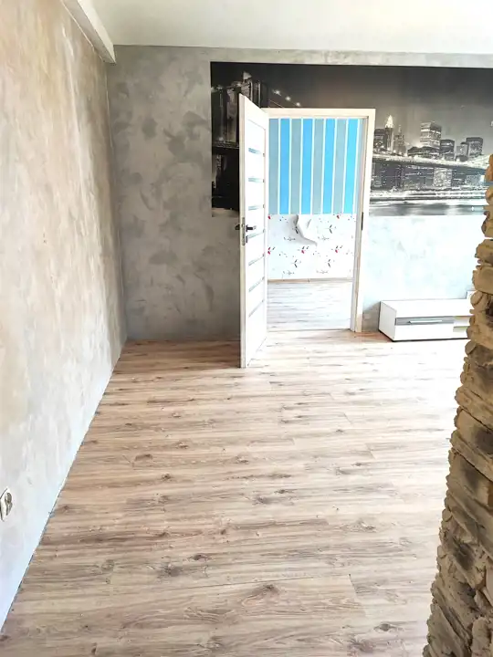 Funkcjonalna przestrzeń i potencjał aranżacyjny: - Jasne, dobrze doświetlone pokoje – przestrzeń, którą można dostosować do własnych potrzeb - Panele podłogowe w pokojach, kafle w części aneksu kuchennego - Wymienione okna - Łazienka razem z WC ,