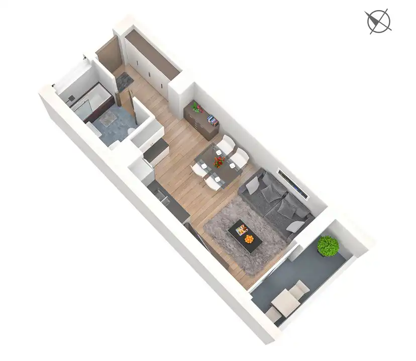 Mieszkanie jest w stanie deweloperskim. Zdjęcia zamieszczone w ogłoszeniu to wizualizacje, które mają na celu przedstawienie potencjału wnętrza.