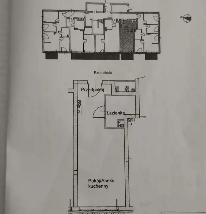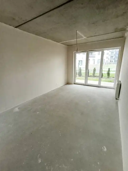 Lokal w stanie deweloperskim: salon z aneksem kuchennym ok 20 m2, łazienka ok 4 m2, przedpokój ok 2 m2.