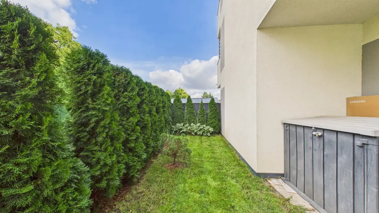 Lokalizacja stanowi jeden z największych atutów tej nieruchomości. Osiedle położone jest w spokojnej, zielonej okolicy, z dala od miejskiego zgiełku, a jednocześnie w doskonale skomunikowanym miejscu – szybki dojazd do centrum miasta zapewniają pobliskie arterie oraz komunikacja miejska. Łączy w sobie komfort codziennego życia z ciszą i prywatnością, jakiej trudno szukać w typowo miejskiej zabudowie.