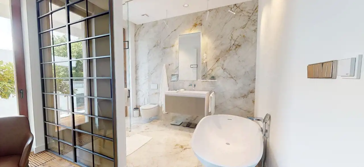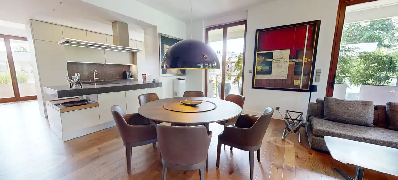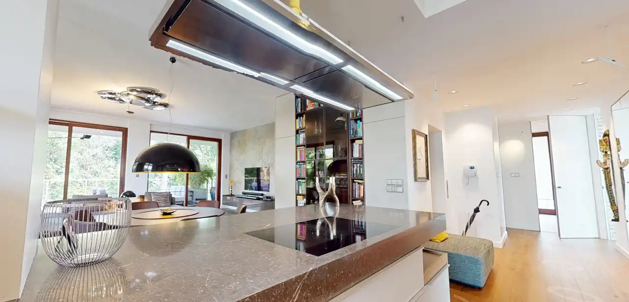 Apartament składa się z czterech przestronnych pokoi, urządzonych z dbałością o każdy szczegół. Luksusowe wyposażenie wiodących marek meblowych, takich jak Molteni, Rimadesio, czy Poggenpohl, podkreśla prestiż tego miejsca.