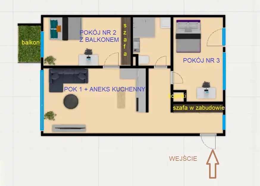 - Charakterystyka mieszkania 44 m2, 3 pokoje