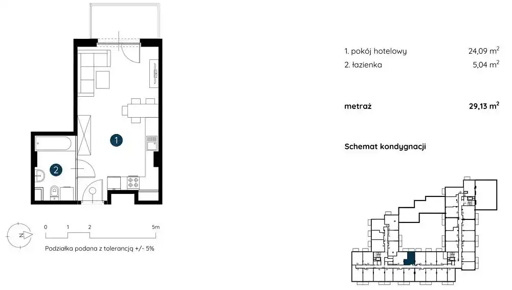 - Charakterystyka mieszkania 29.13 m2, 1 pokój