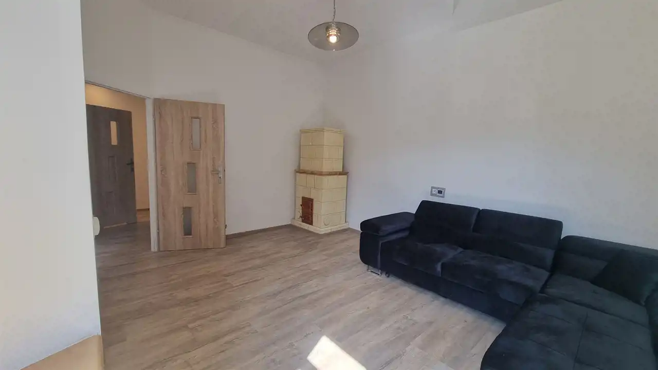 - Pokój dzienny 17,70m2: przestronny salon z piecem kaflowym dodającym uroku.