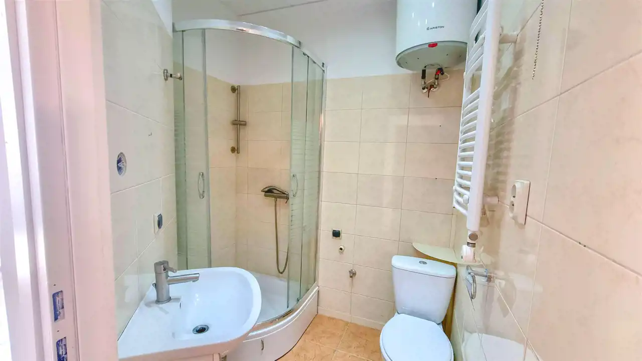 - Ogrzewanie elektryczne: Podłogowe w mieszkaniu z możliwością sterowania poprzez telefon komórkowy, wiszący elektryczny kaloryfer w łazience oraz terma na gorącą wodę.